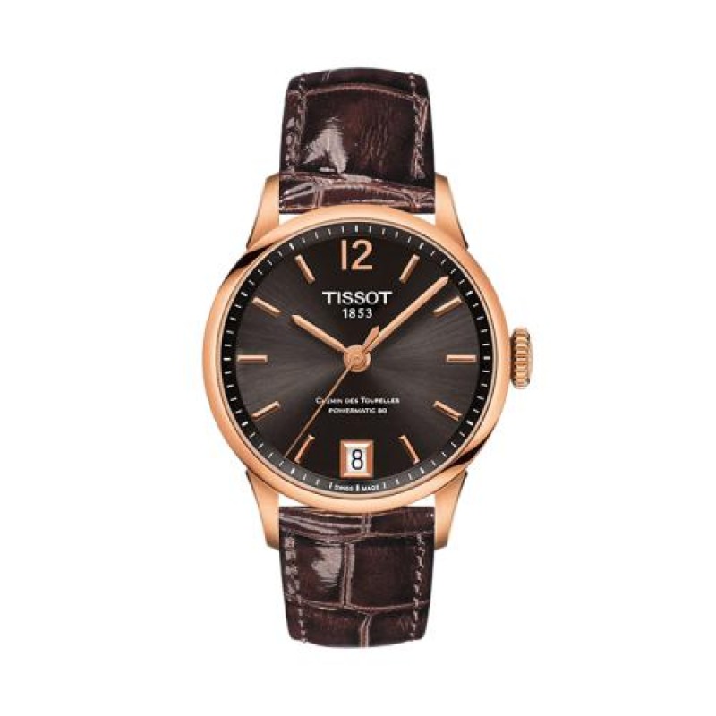 【正品盒装】TISSOT/天梭 杜鲁尔系列 青铜色镀 数字与条丁刻度 皮带 机械女表 T099.207.36.447.00