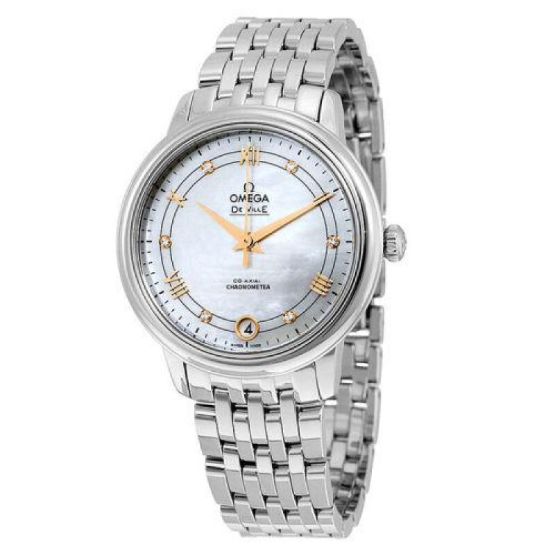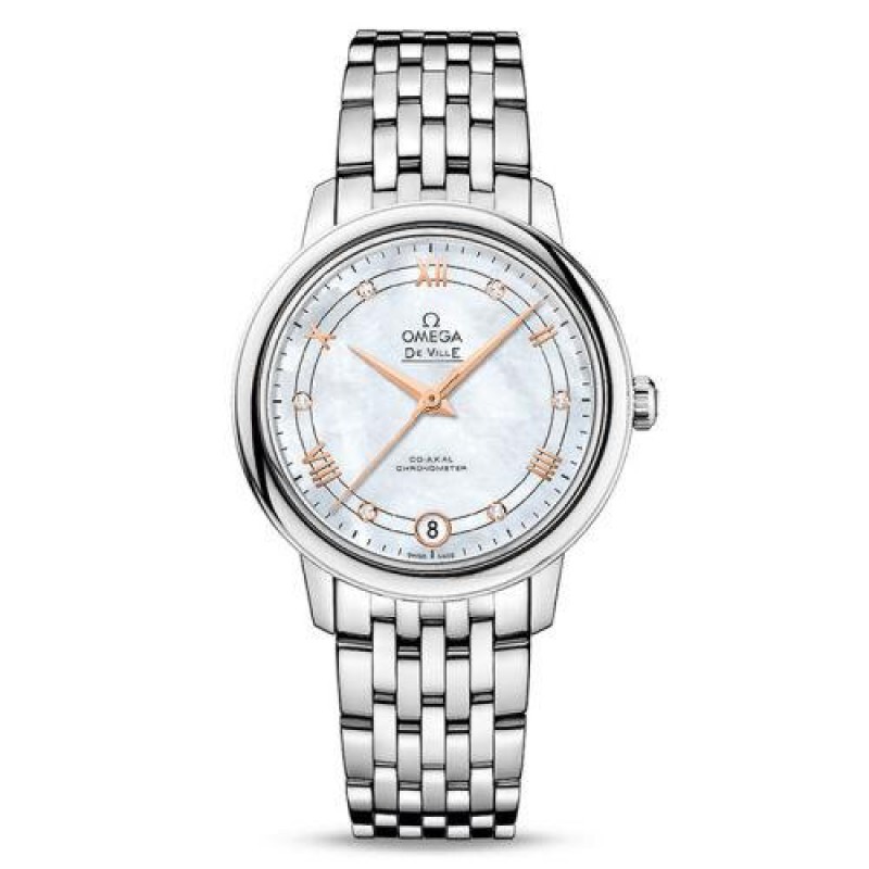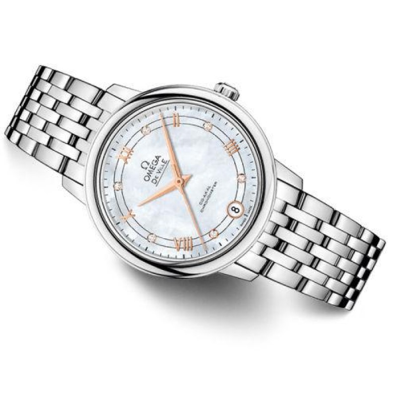 OMEGA/欧米茄瑞士手表 碟飞系列日历镶钻自动机械女士腕表 钢带白盘424.10.33.20.55.002