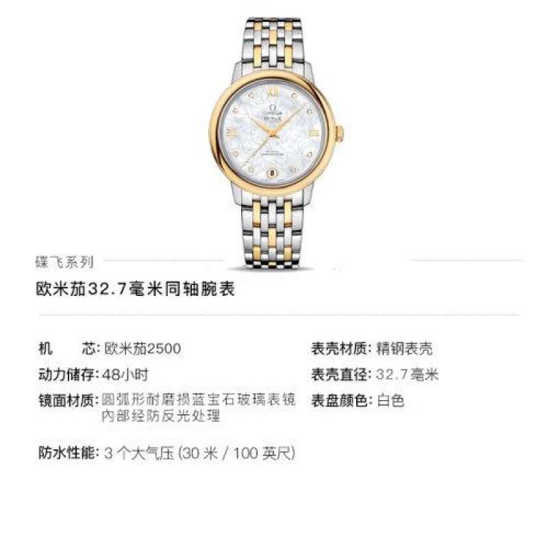 OMEGA/欧米茄瑞士手表 碟飞系列镶钻自动机械女士腕表 钢带白盘424.20.33.20.55.002 $7914.3 |