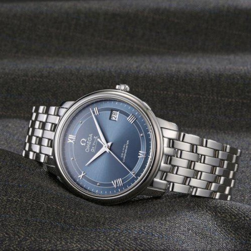 OMEGA/欧米茄瑞士手表 碟飞系列日历自动机械男士腕表 钢带蓝盘424.10.37.20.03.002