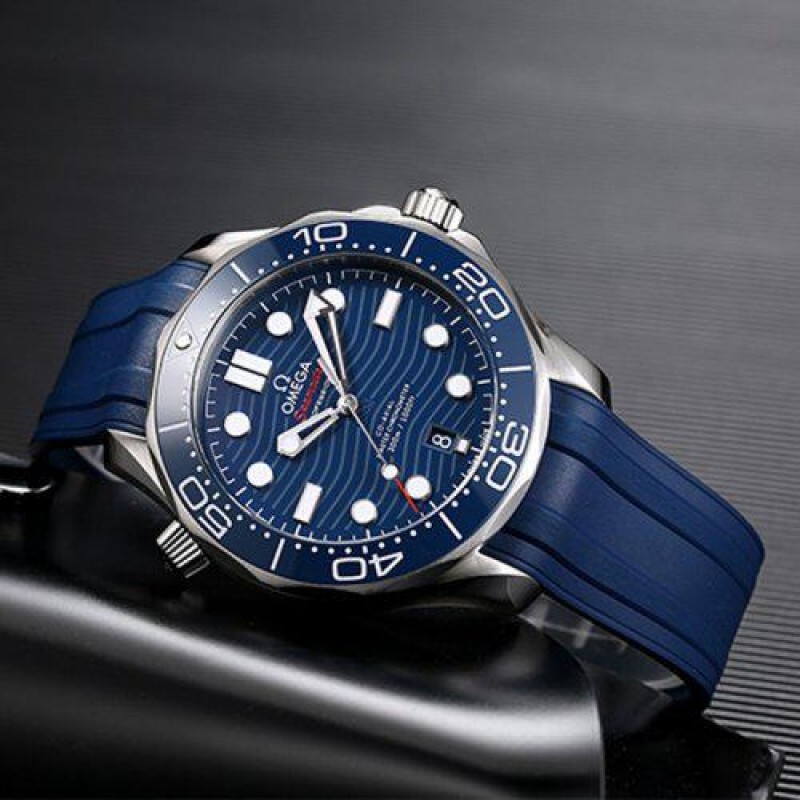 OMEGA/欧米茄瑞士手表 海马系列日历300米潜水表自动机械男士腕表 皮带蓝盘210.32.42.20.03.001