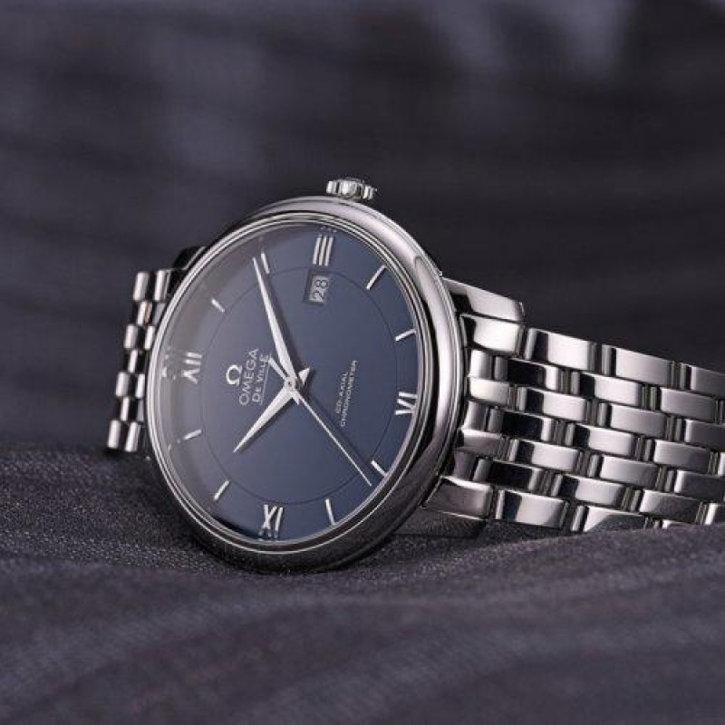 OMEGA/欧米茄瑞士手表 碟飞系列日历自动机械男士腕表 钢带蓝盘424.10.40.20.03.001