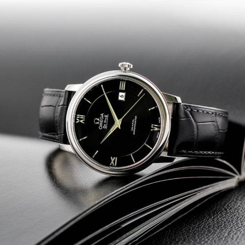 OMEGA/欧米茄瑞士手表 碟飞系列自动机械男士腕表 皮带黑盘424.13.40.20.01.001