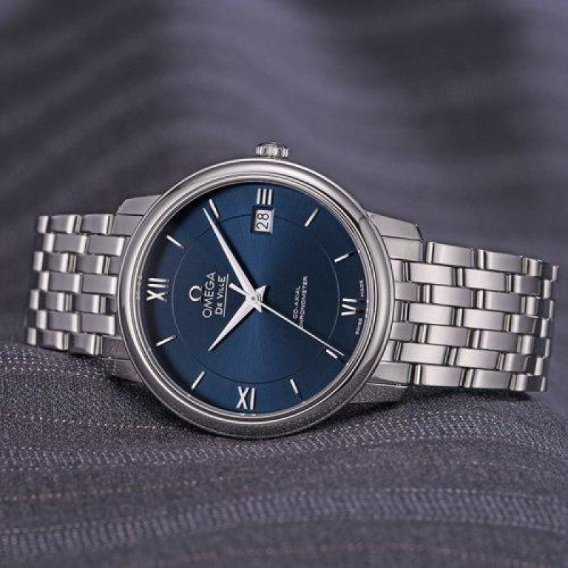 OMEGA/欧米茄瑞士手表 碟飞系列日历自动机械男士腕表 钢带蓝盘424.10.37.20.03.001