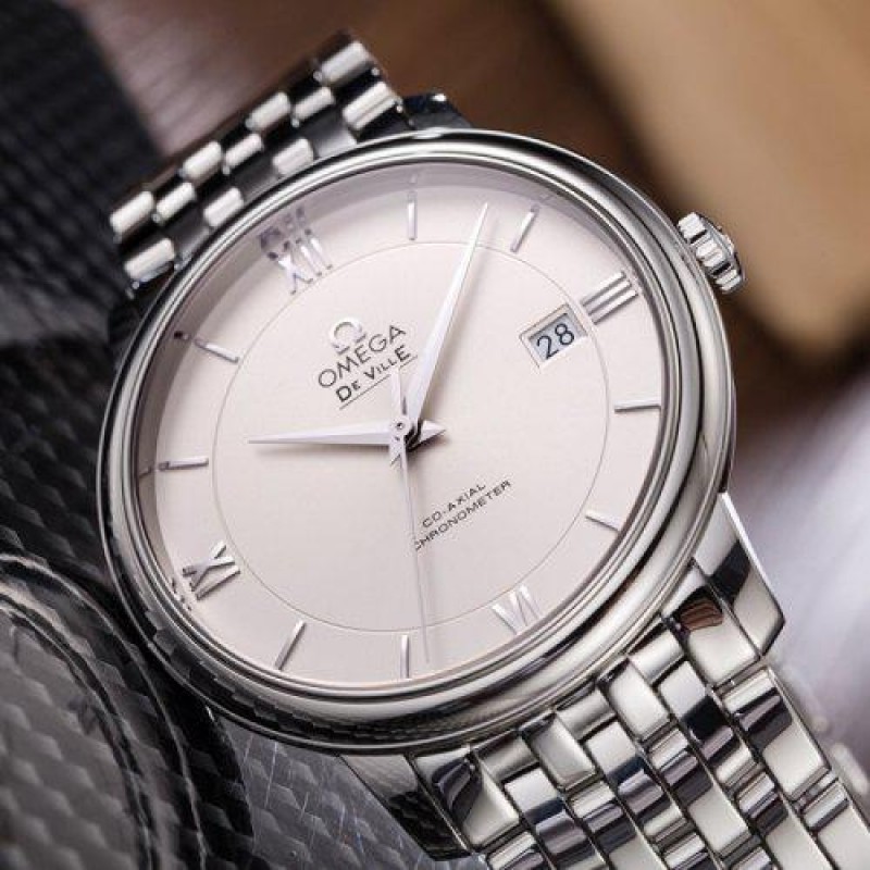 OMEGA/欧米茄瑞士手表 碟飞系列日历自动机械男士腕表 钢带银白盘424.10.40.20.02.003