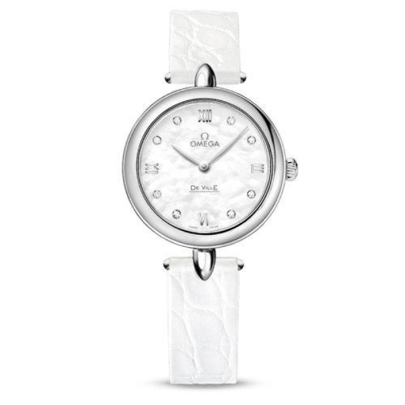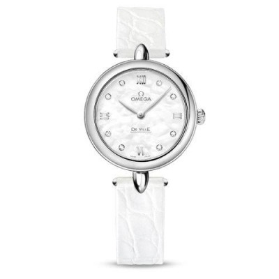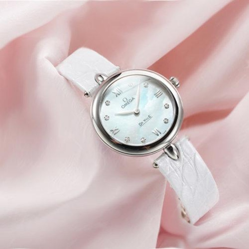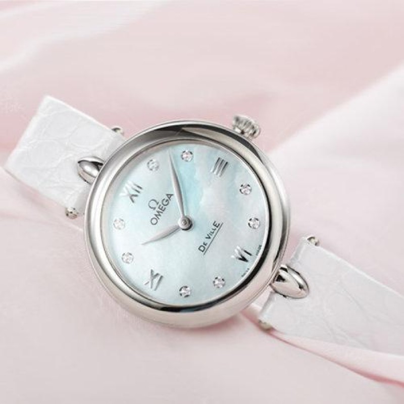 OMEGA/欧米茄瑞士手表 碟飞系列镶钻石英女士腕表 皮带白盘424.13.27.60.55.001