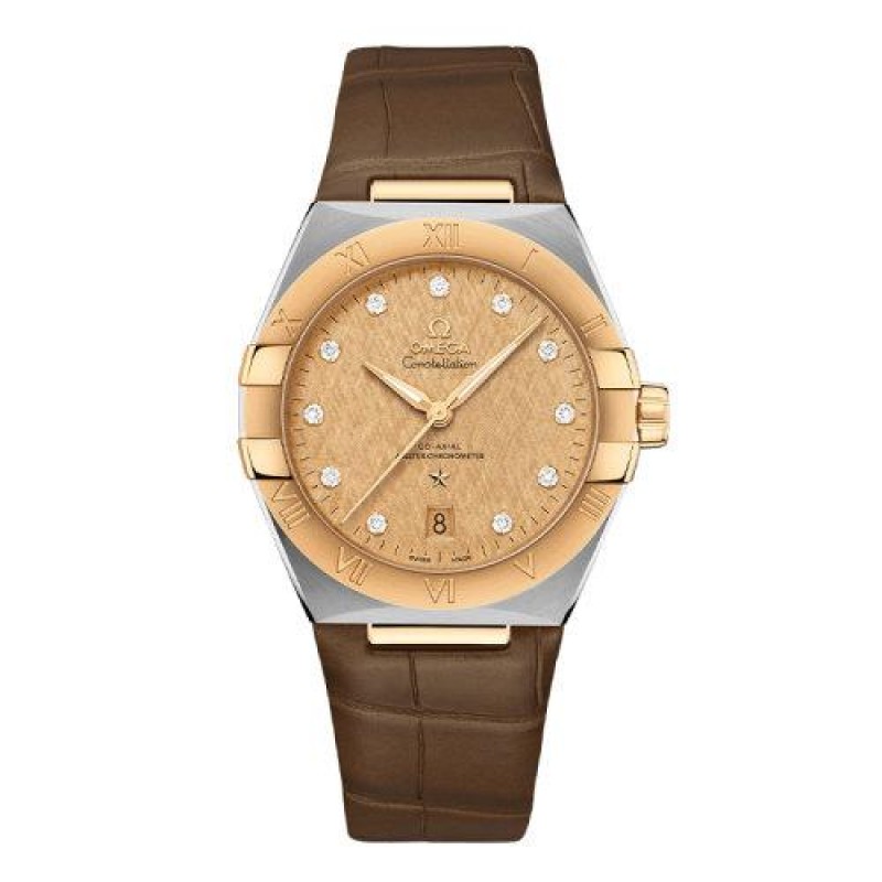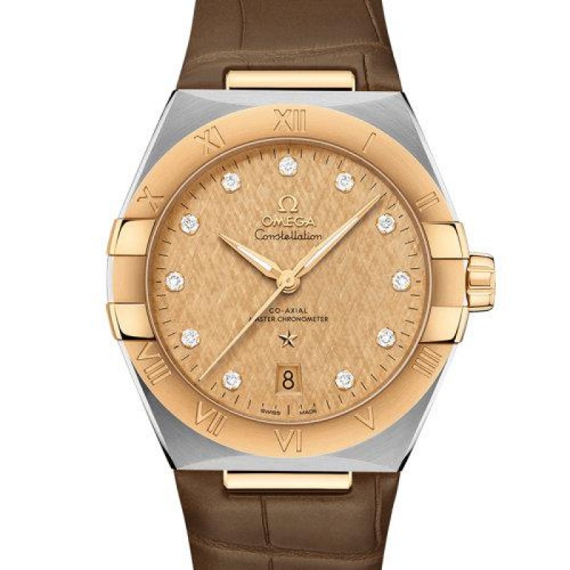 OMEGA/欧米茄瑞士手表 星座系列日历镶钻自动机械机芯商务男士腕表 皮带黄盘131.23.39.20.58.001