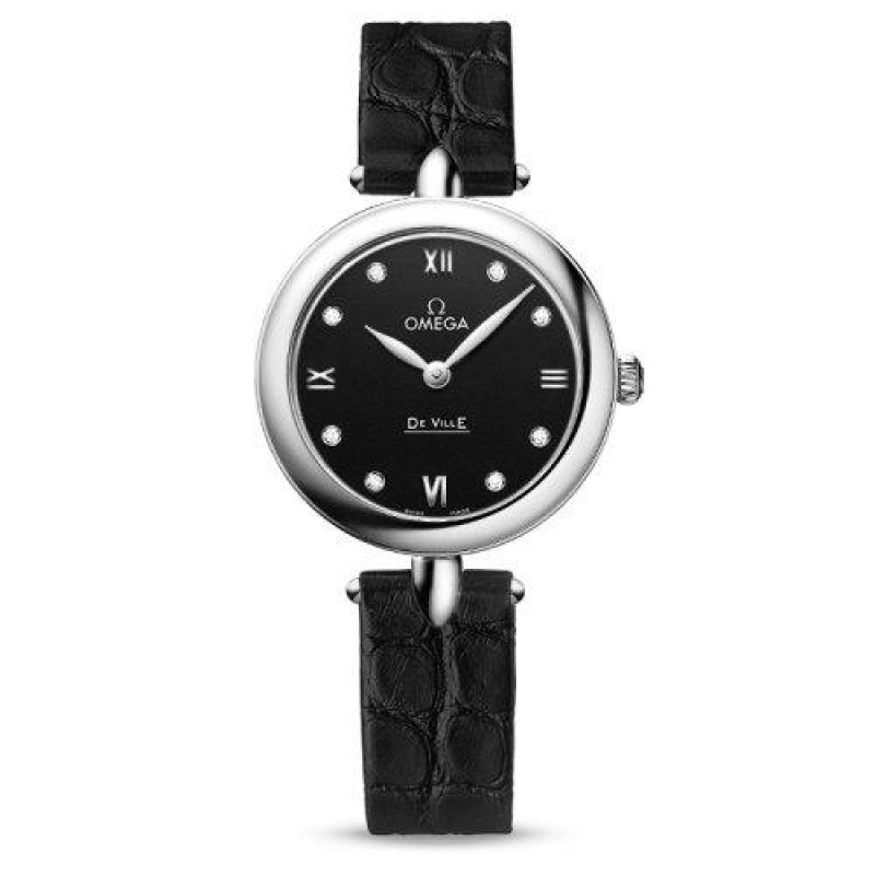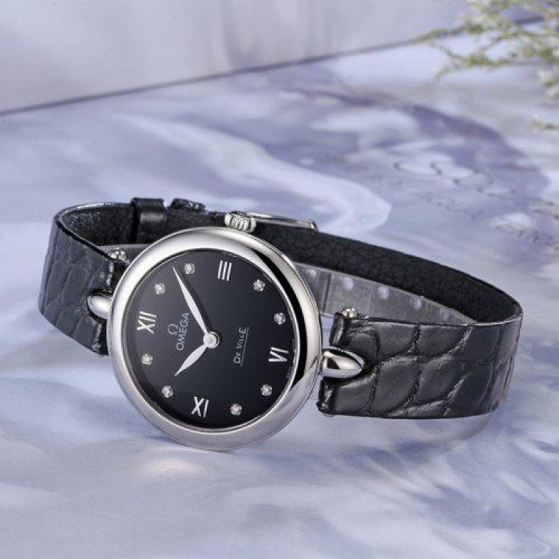 OMEGA/欧米茄瑞士手表 碟飞系列镶钻女士石英腕表 皮带黑盘424.13.27.60.51.001