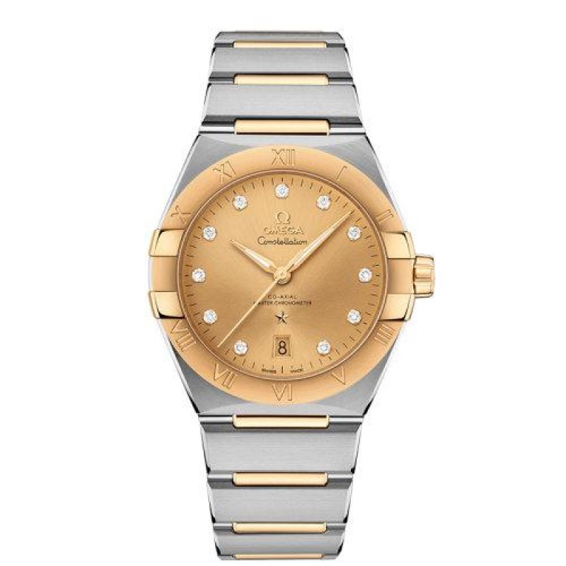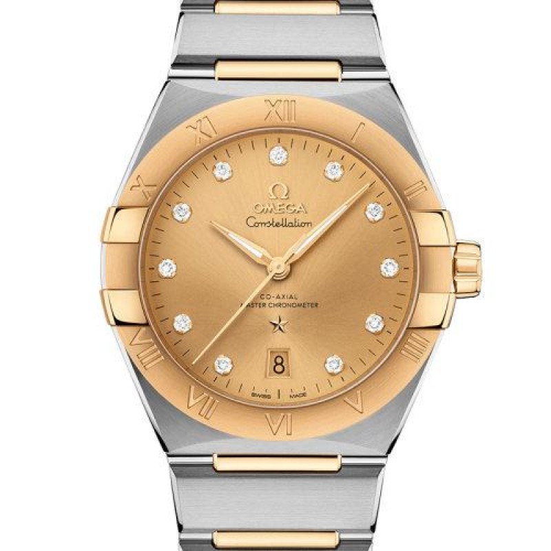 OMEGA/欧米茄瑞士手表 星座系列日历镶钻自动机械机芯商务男士腕表 钢带黄盘131.20.39.20.58.001