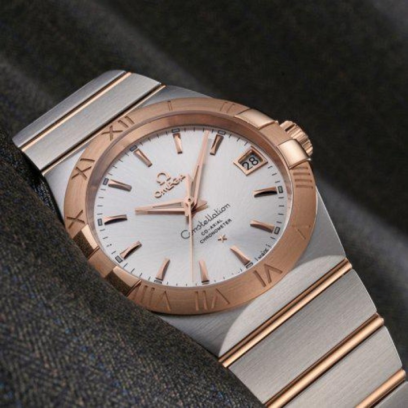 OMEGA/欧米茄瑞士手表 星座系列日历自动机械男士腕表 钢带银盘123.20.38.21.02.001