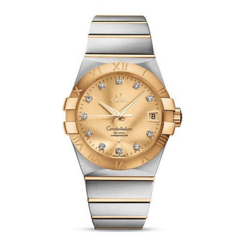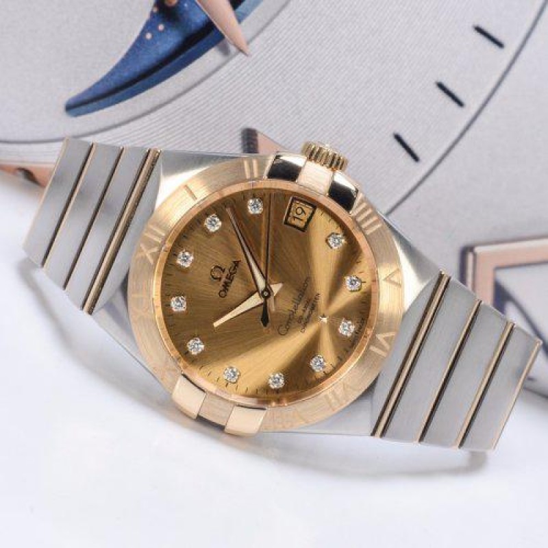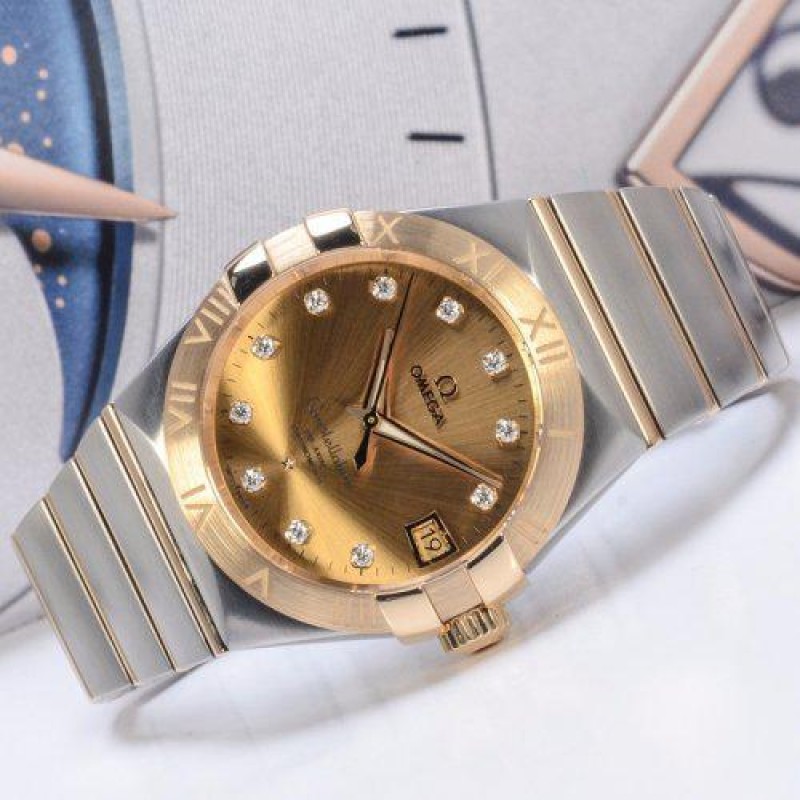 OMEGA/欧米茄瑞士手表 星座系列日历镶钻自动机械男士腕表 钢带金盘123.20.38.21.58.001 $9127.1 |