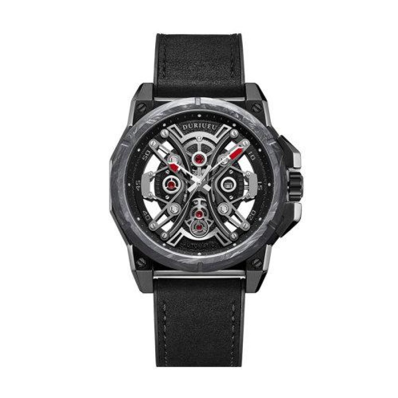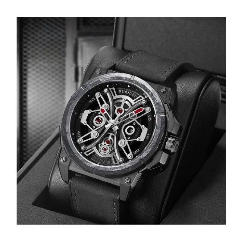 DURIUEU/杜里手表 进口机芯自动机械表商务时尚潮流男士腕表 黑皮带黑线黑盘红钻 DU-18003MEXEEEH5 全球联保