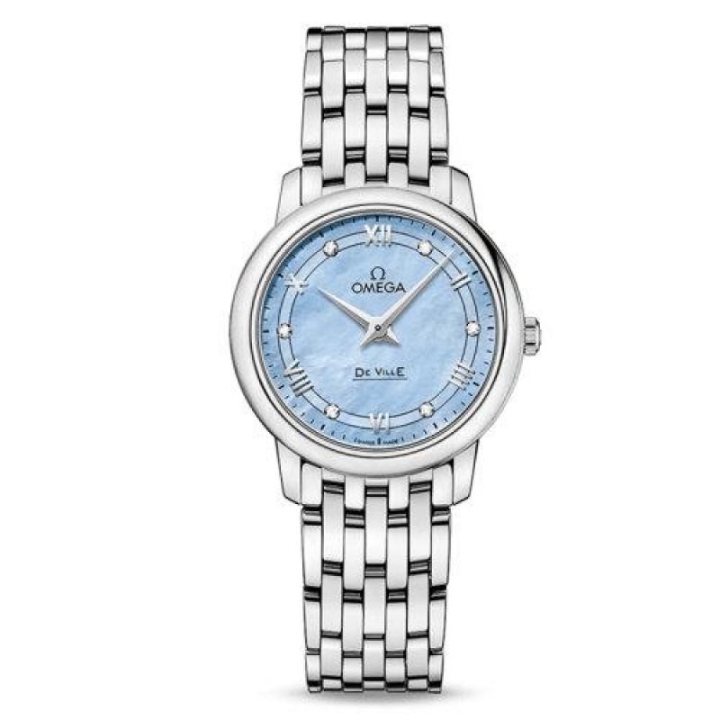 OMEGA/欧米茄瑞士手表 碟飞系列镶钻石英机芯女士腕表 钢带蓝盘424.10.27.60.57.001