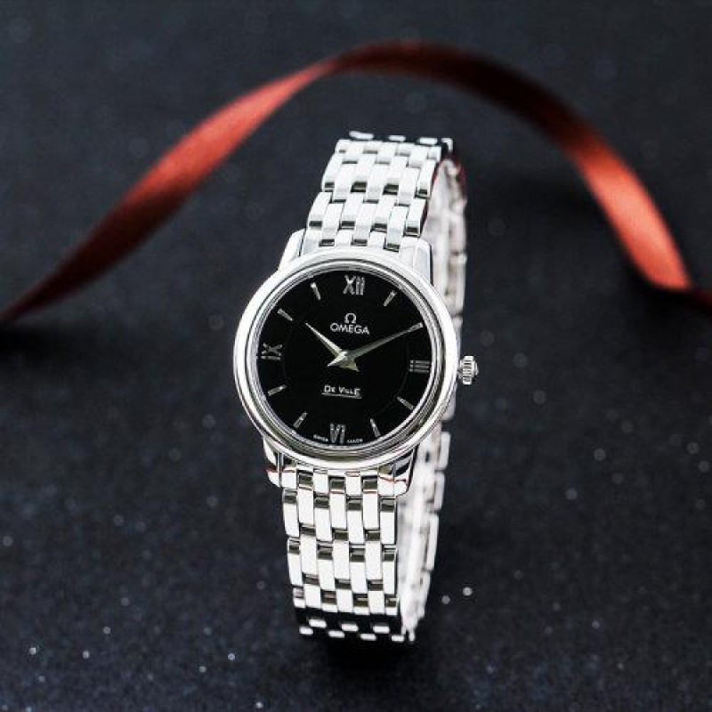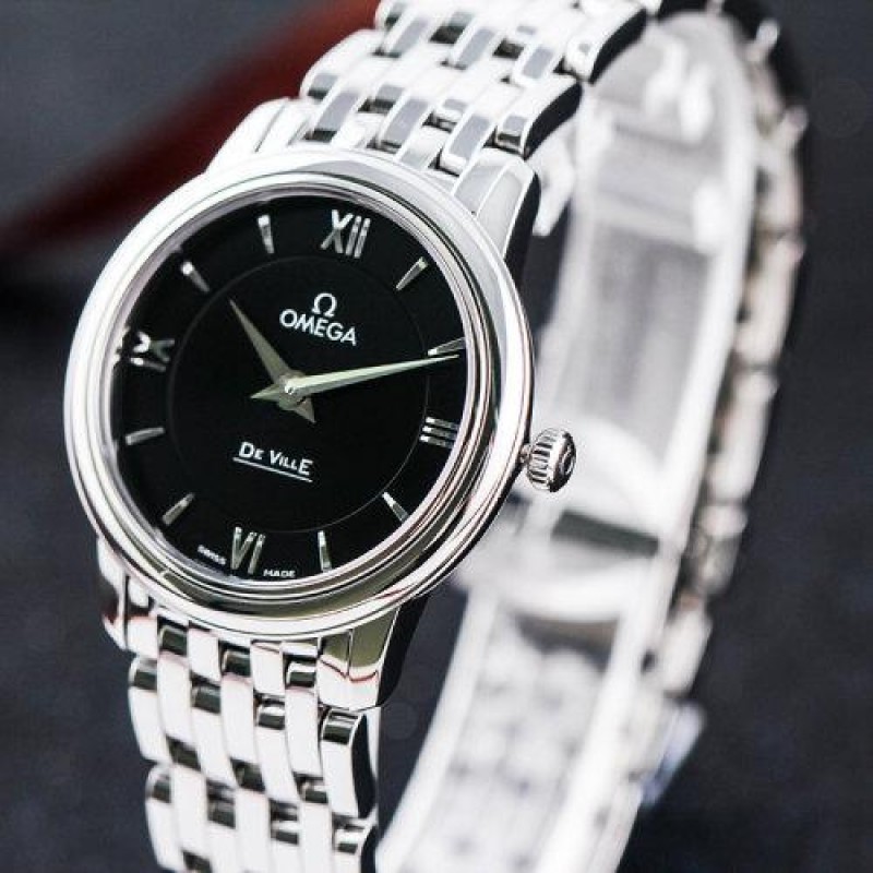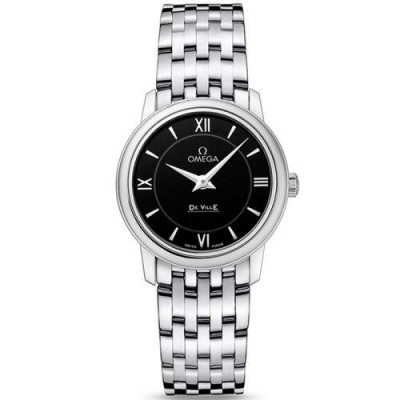 OMEGA/欧米茄瑞士手表 碟飞系列罗马刻度石英机芯女士腕表 钢带黑盘424.10.27.60.01.001