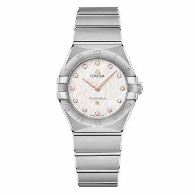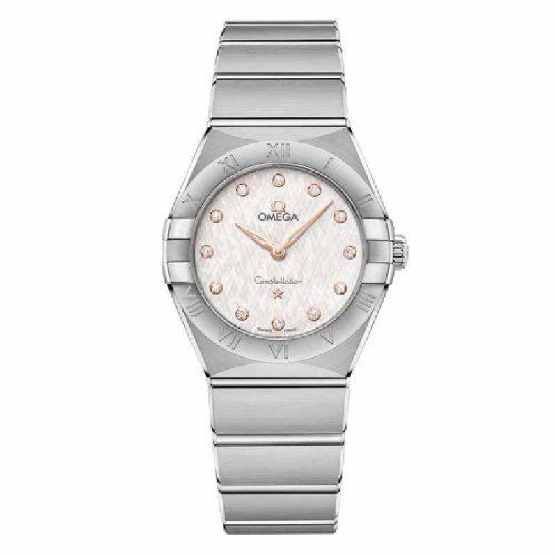 OMEGA/欧米茄瑞士手表 星座系列曼哈顿镶钻石英女士腕表 钢带银盘131.10.28.60.52.001