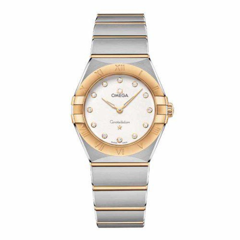 OMEGA/欧米茄瑞士手表 星座系列曼哈顿镶钻石英女士腕表 钢带银盘131.20.28.60.52.002