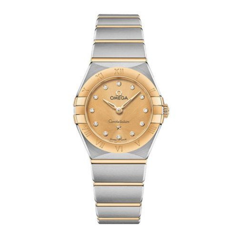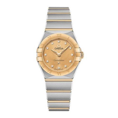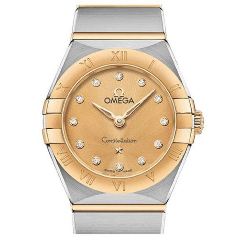 Omega/Omega Constellation Series Gold Steel Yellow Silk Texture Plate with 12 Diamonds Female 25 # 13120256058001