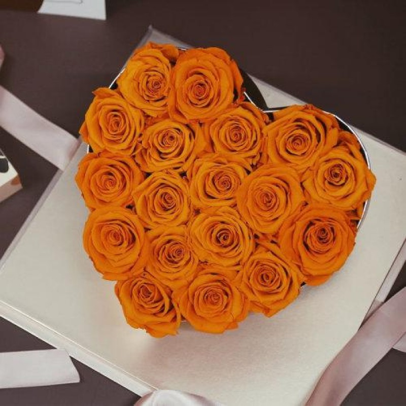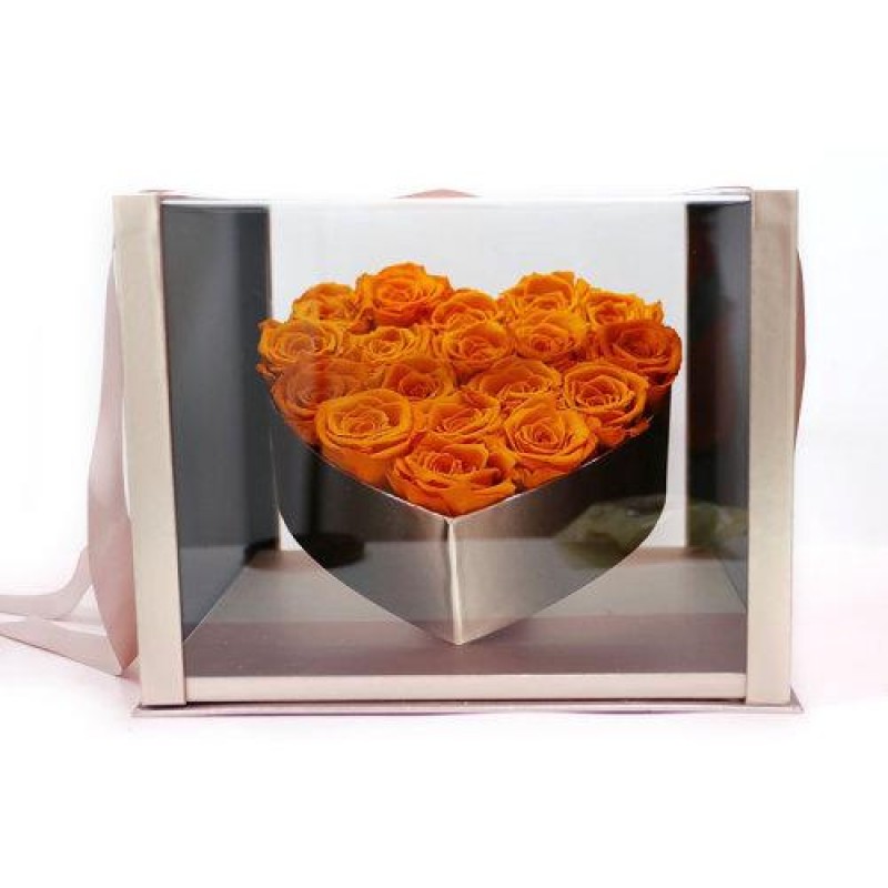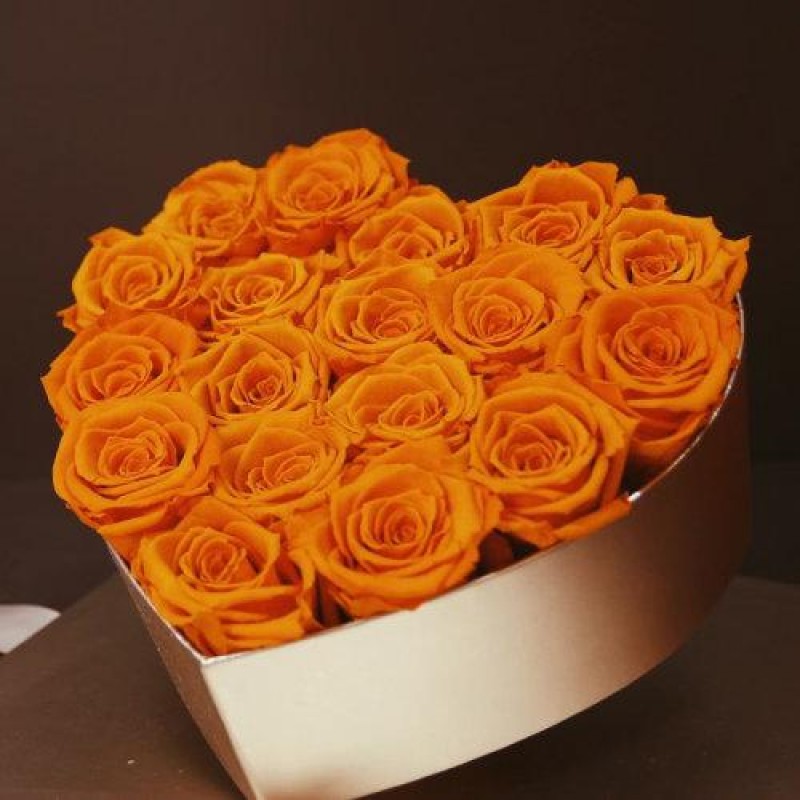 FlowerFun/FlowerFun Sincerely Orange 18 Ecuador Roseamor Heart Shaped Eternal Rose Box