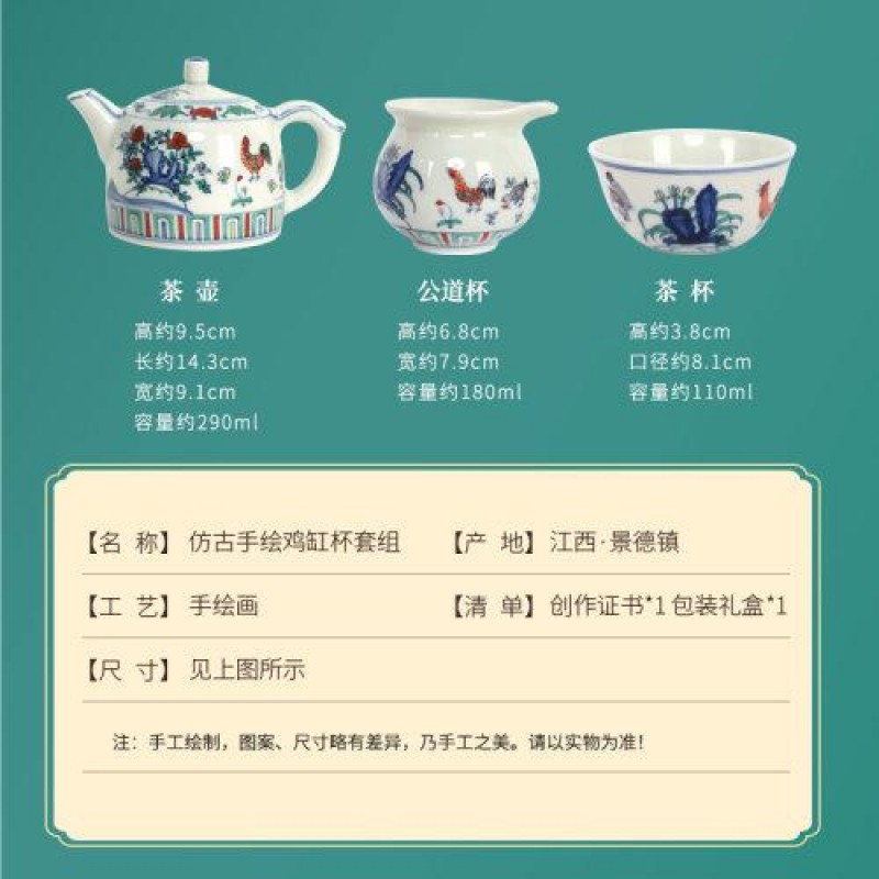 Zhongyi Shengjia Jingdezhen hand-painted chicken jar cup set, antique Ming Chenghua master cup, tea cup, ceramic tea tasting cup