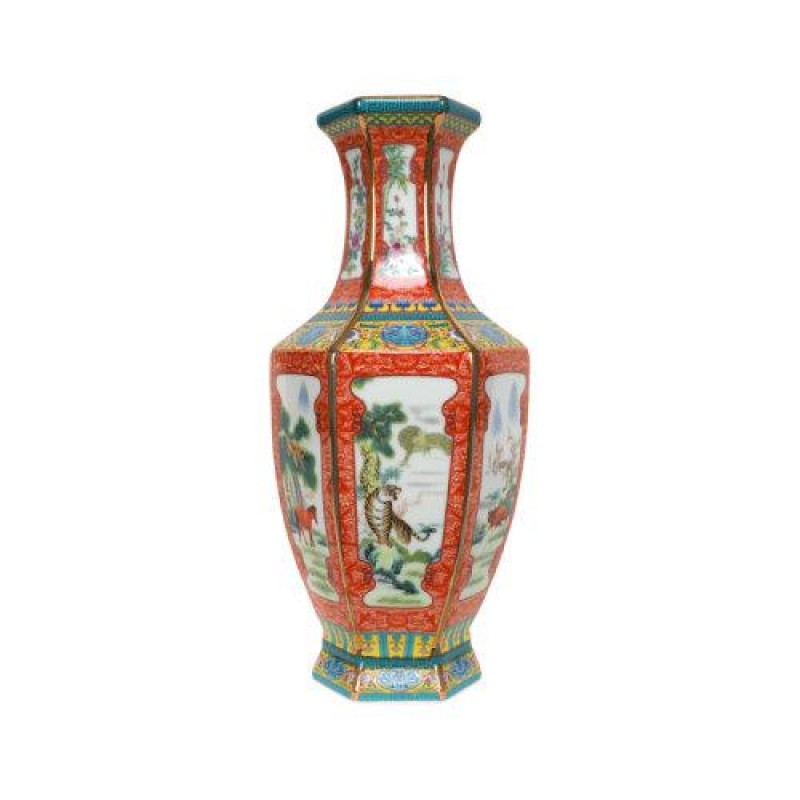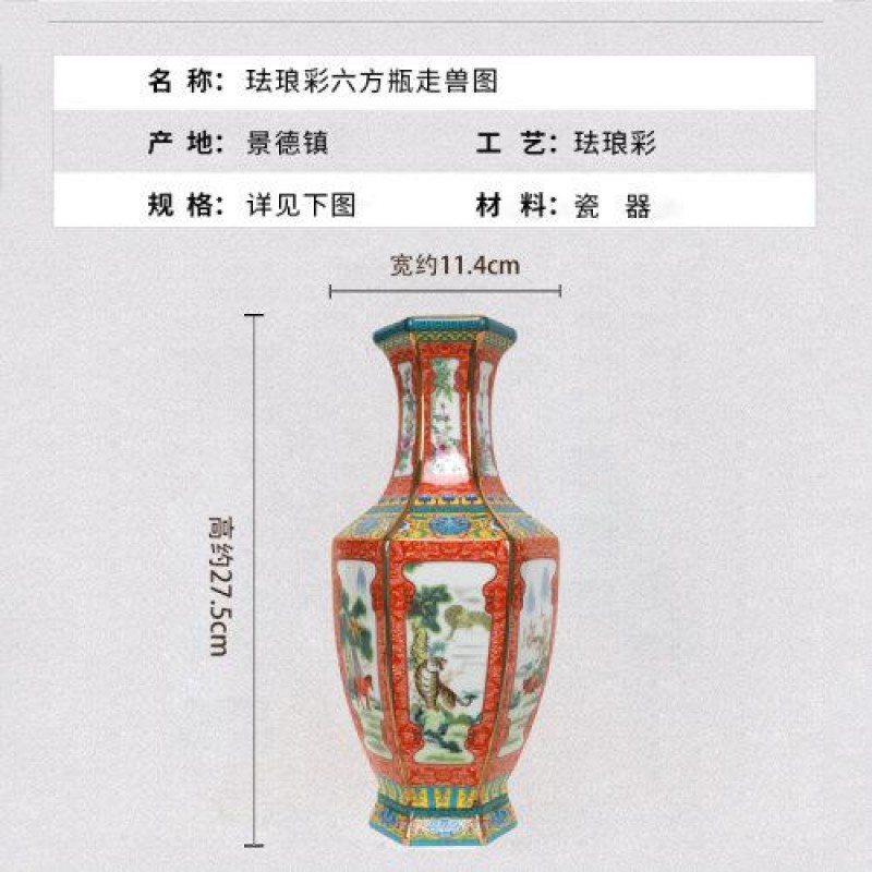 Zhongyi Shengjia Jingdezhen enamel color hexagonal bottle antique hand-painted living room decoration home decor $182.9 |