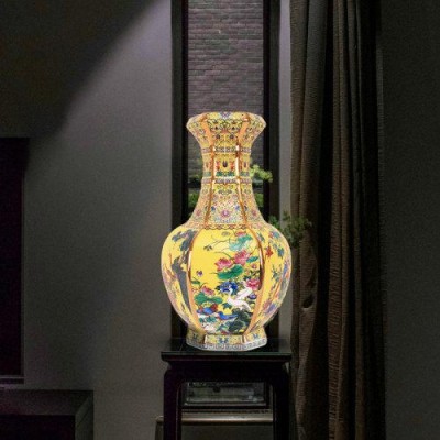 Zhongyi Shengjia Jingdezhen porcelain vase enamel hexagonal garlic bottle antique hand-painted living room decoration home decor
