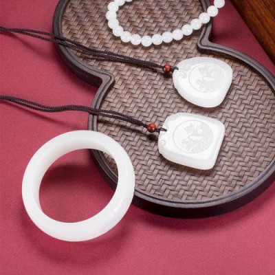 Zhongyi Shengjia Zhongyi Hall Collection Natural Hotan Jade Sheep Butter Jade Royal Inherited Jade Bracelet Set