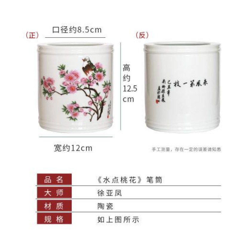 中艺盛嘉 中藝堂收藏品 徐亚凤 粉彩瓷 水点桃花笔筒