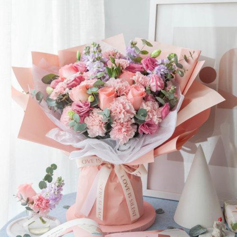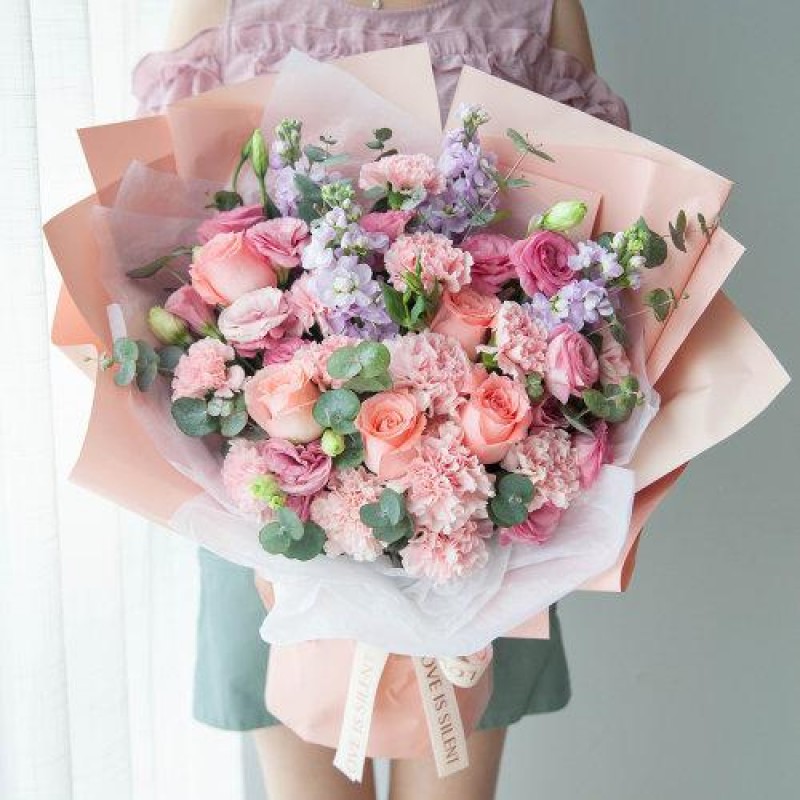 花礼/韩式系列/温柔以待/粉色康乃馨13枝,戴安娜玫瑰/鲜花/七夕情人节礼物鲜花/当日达 $39.0 |