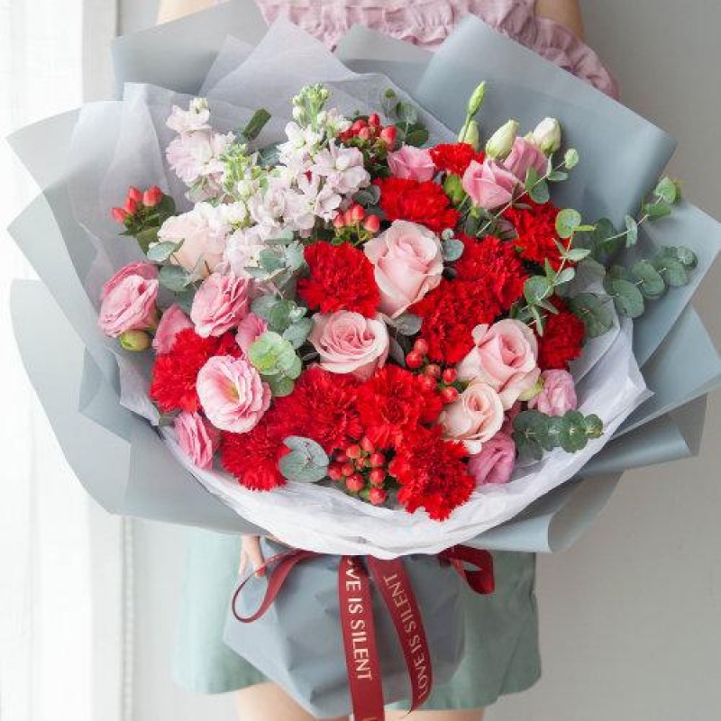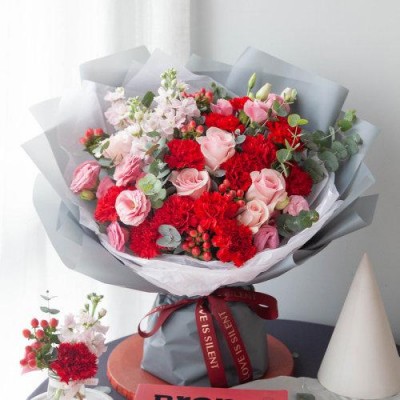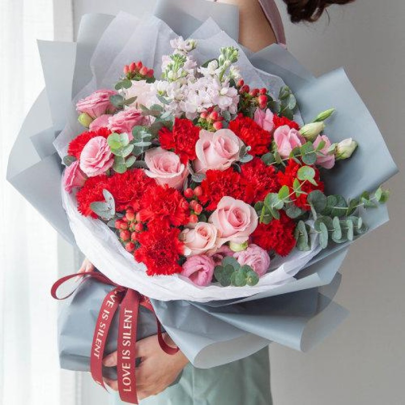 花礼/韩式系列/牵挂你/红色康乃馨13枝,粉佳人玫瑰/七夕情人节礼物鲜花/当日达