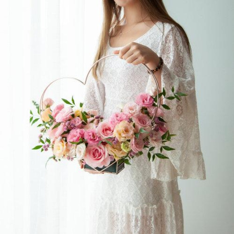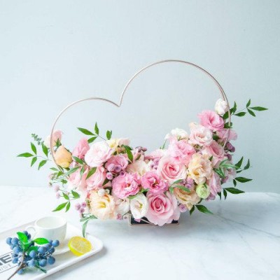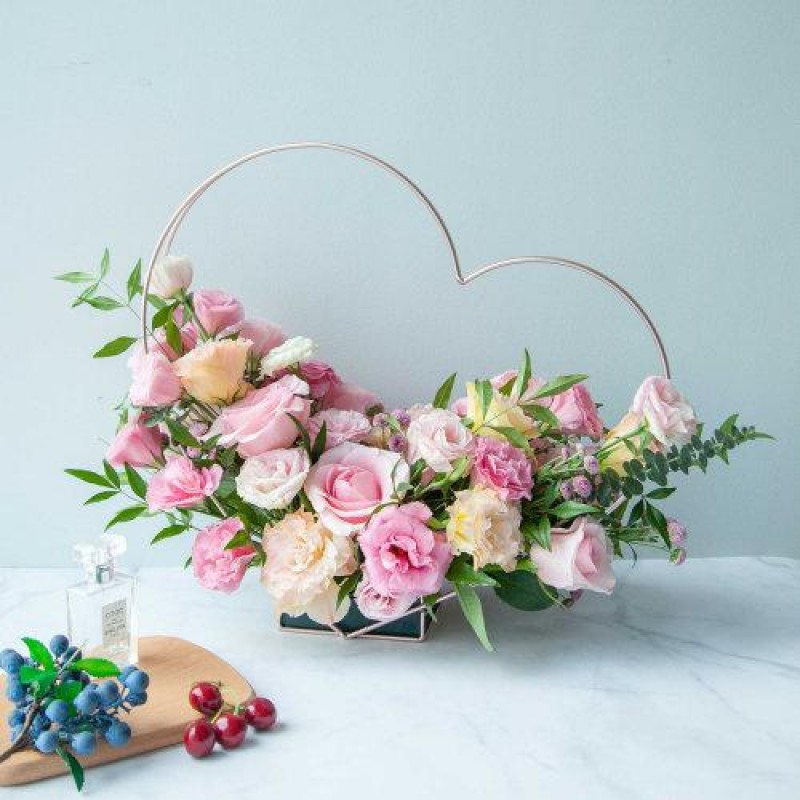花礼/爱的喜悦/创意心形金属花篮/粉佳人玫瑰9枝,粉桔梗香槟桔梗//七夕情人节礼物鲜花/当日达 $43.9 |