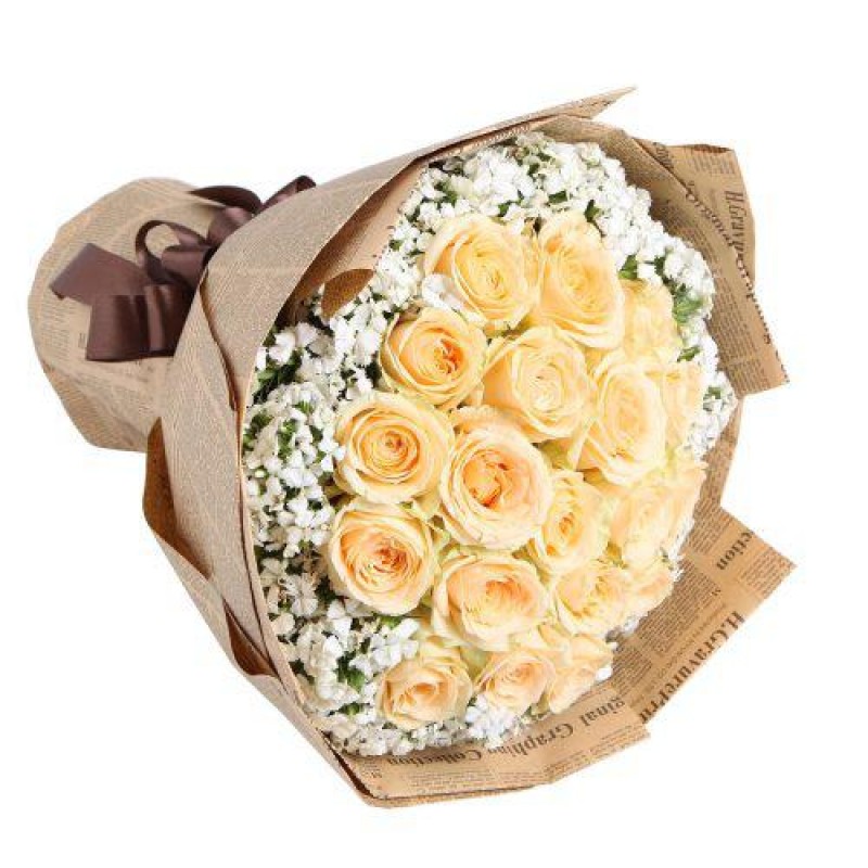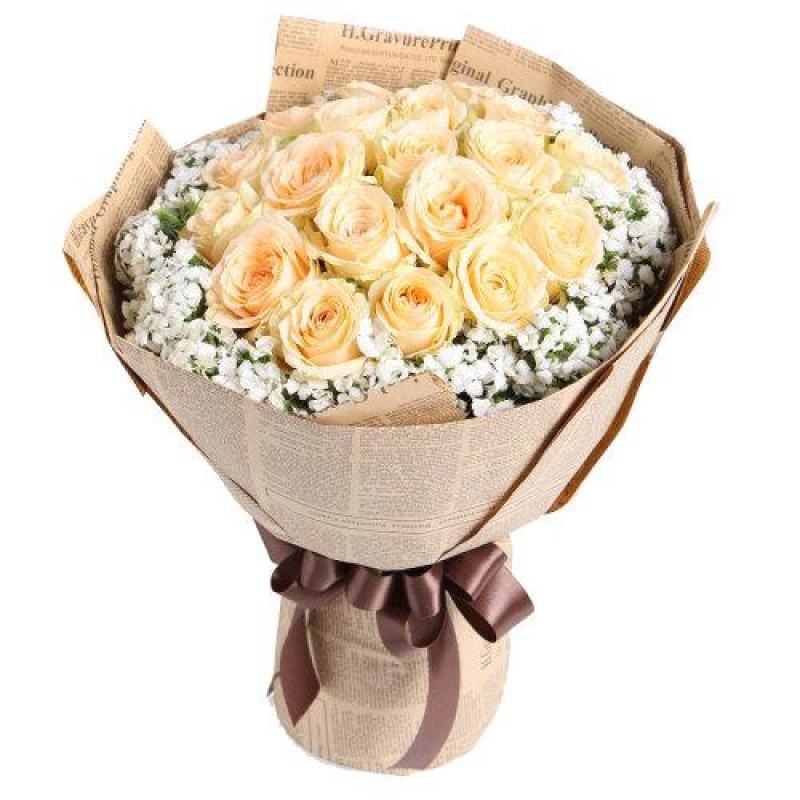 花礼/阳光海岸/19枝香槟玫瑰/七夕情人节礼物鲜花送人/当日达