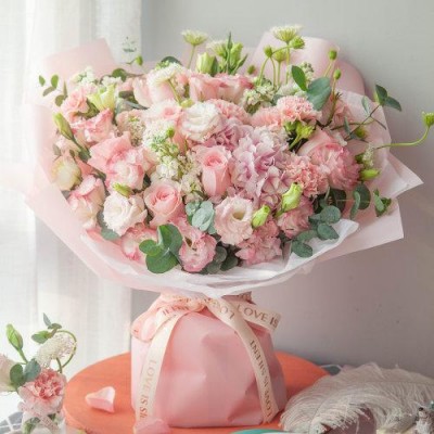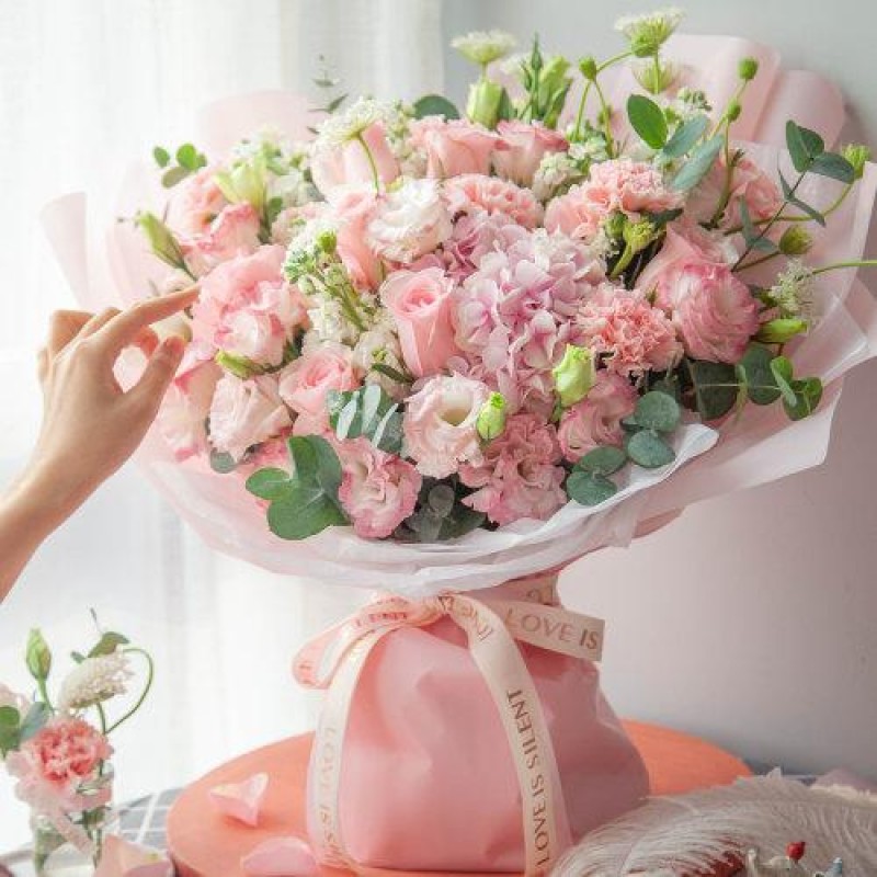 花礼/韩式系列/倍加珍惜/粉色康乃馨11枝,粉佳人玫瑰5枝/七夕情人节礼物鲜花/当日达 $45.6 |