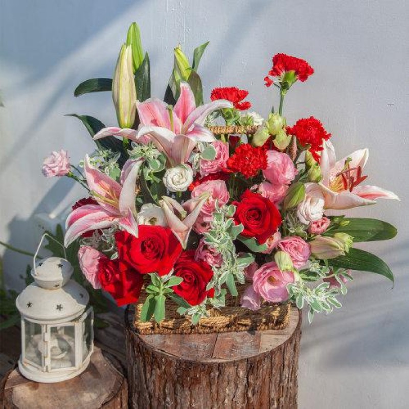 花礼/圆满/粉百合2枝、红玫瑰9枝、红色康乃馨15枝/七夕情人节礼物鲜花/当日达 $45.6 |