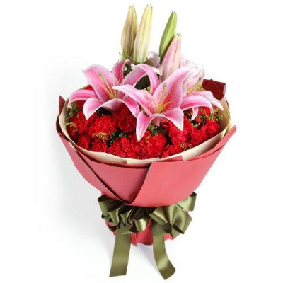 花礼/感激/29枝红康乃馨,2枝多头粉百合/七夕情人节礼物鲜花/当日达 $36.7 |