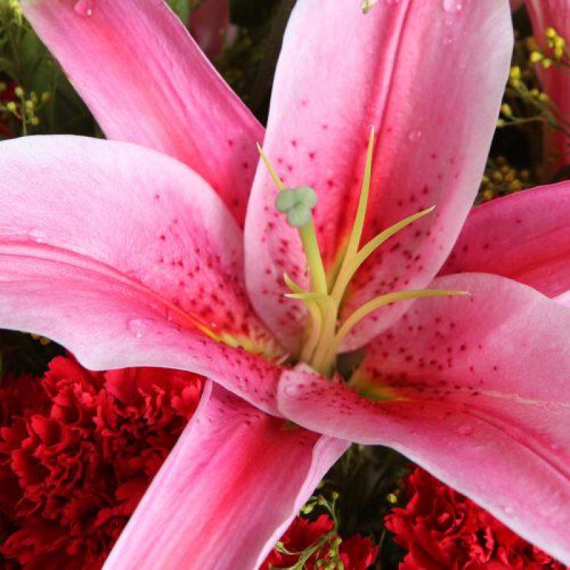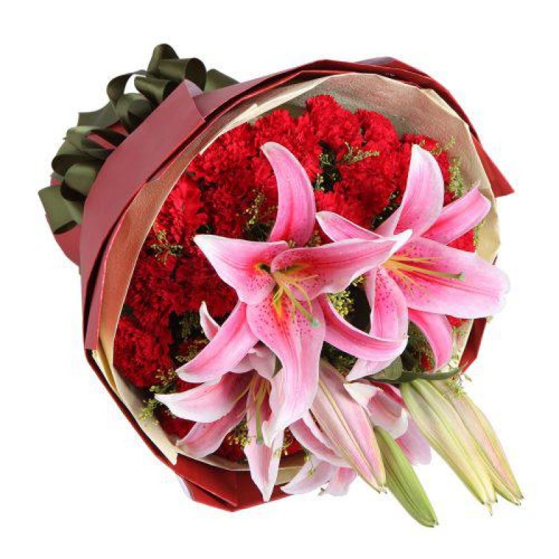 花礼/感激/29枝红康乃馨,2枝多头粉百合/七夕情人节礼物鲜花/当日达