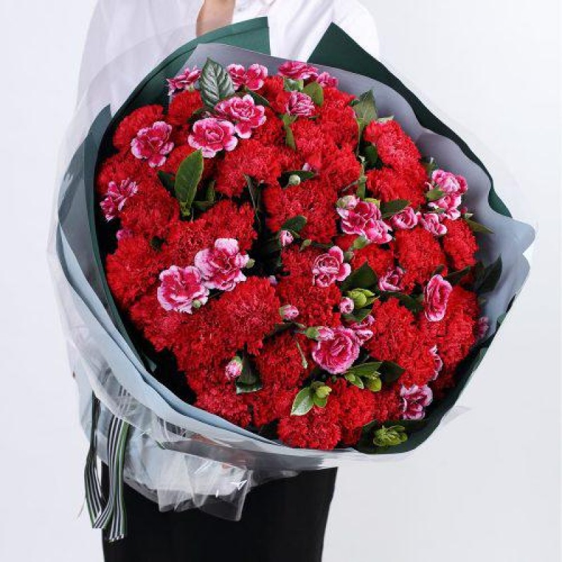 花礼/幸福万年长/红色康乃馨66枝,白边紫色多头康乃馨15枝/七夕情人节礼物鲜花/当日达 $56.6 |