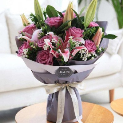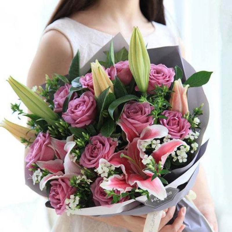 花礼/浪漫香气/11枝冷美人紫玫瑰,多头粉百合2枝/七夕情人节礼物鲜花送人/提前1天预订