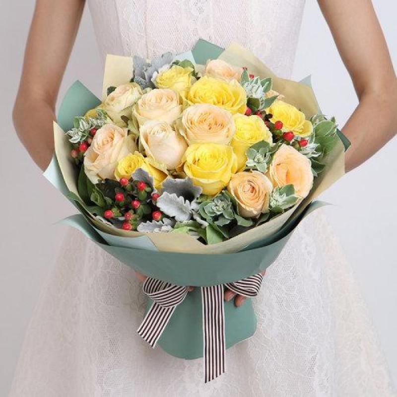 花礼/暗香/香槟玫瑰11枝,黄玫瑰8枝,红豆3枝/七夕情人节礼物鲜花/提前1天预订 $38.7 |