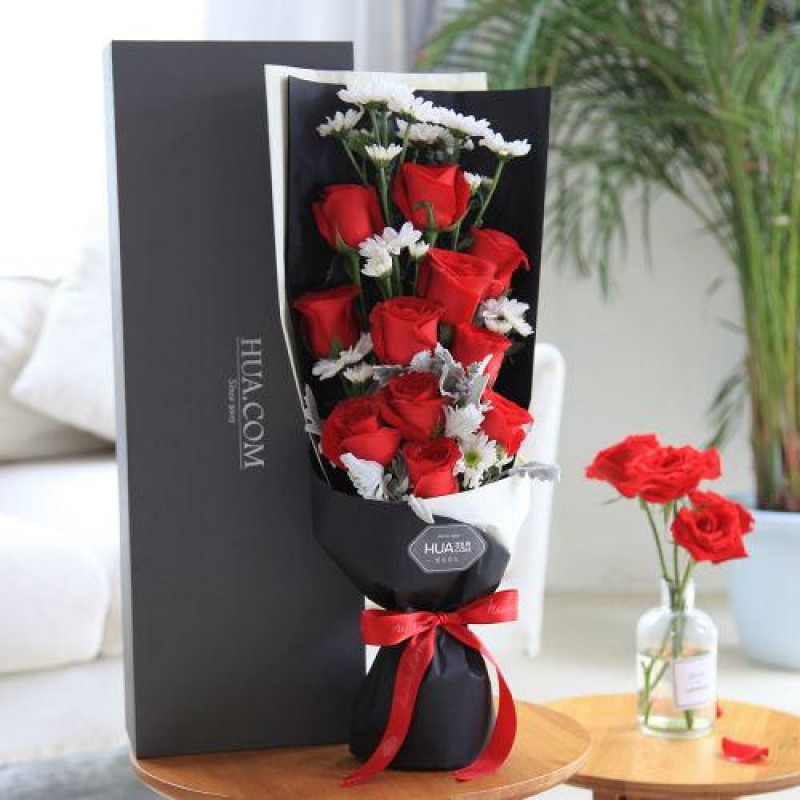 花礼/浪漫告白/卡罗拉红玫瑰11枝、白色小雏菊4枝/七夕情人节礼物鲜花送人/当日达