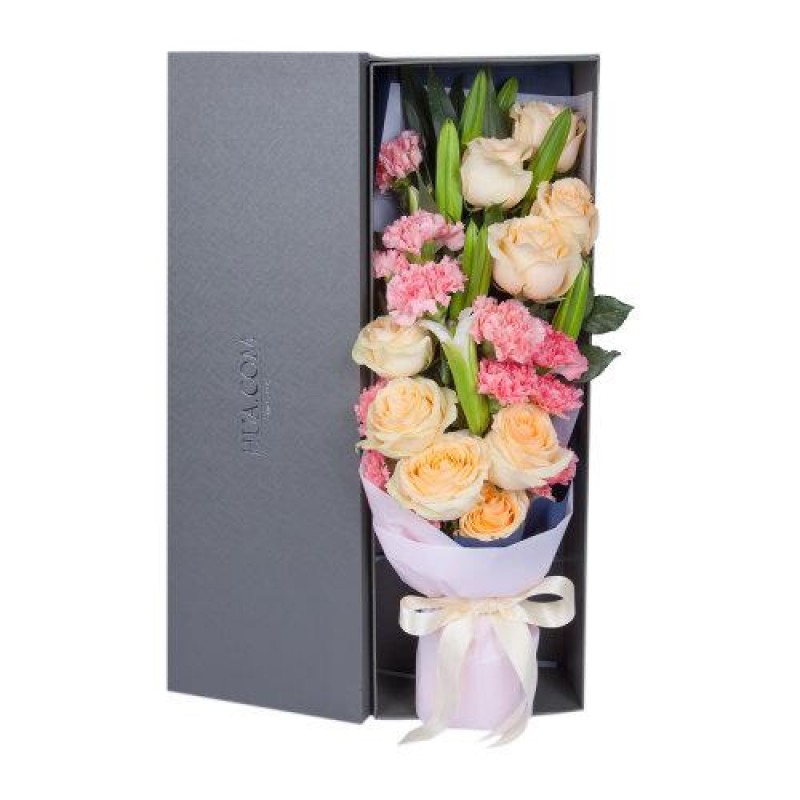 |  | 花礼/温馨问候/香槟玫瑰9枝、多头白百合2枝、粉色康乃馨13枝//七夕情人节礼物鲜花/当日达 $46.6 |