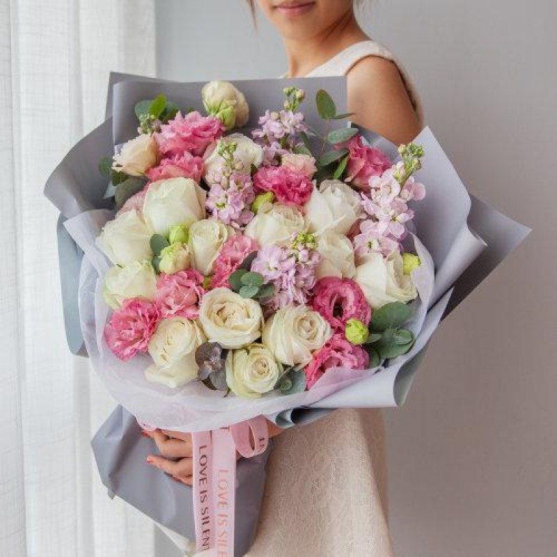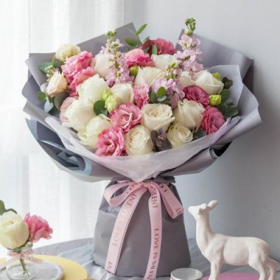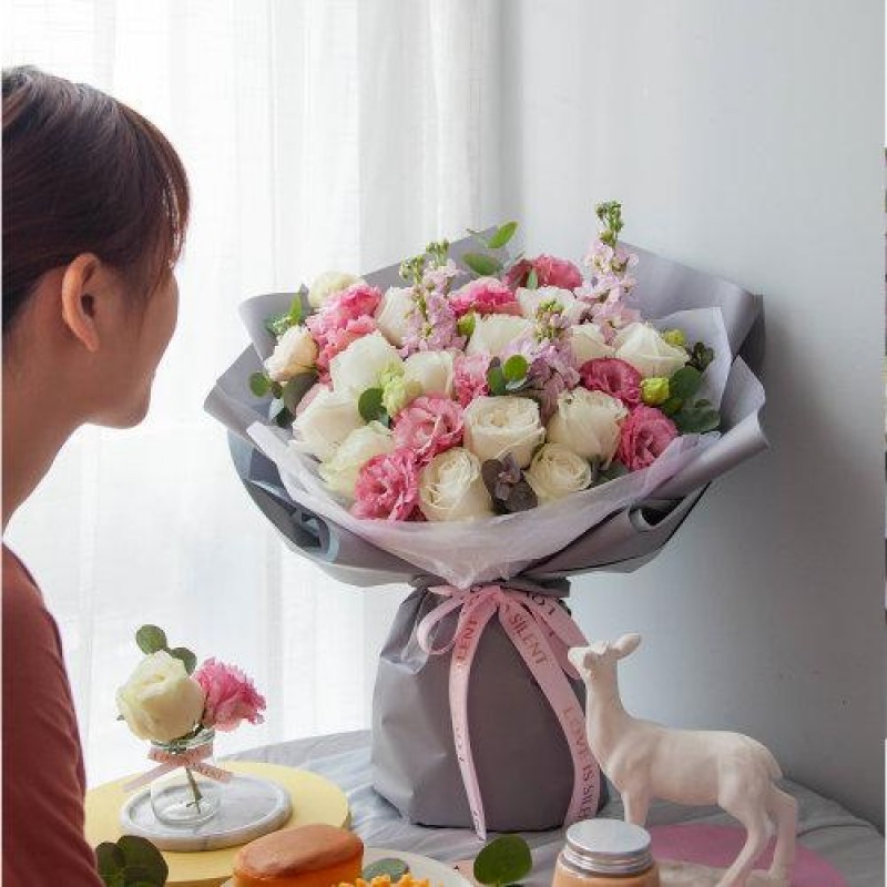 花礼/韩式系列/佳期如梦/白雪山玫瑰13枝、洋桔梗、尤加利、紫罗兰//七夕情人节礼物鲜花送人/当日达