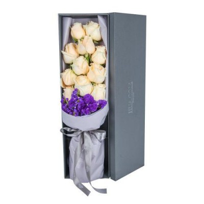 花礼/恰似你的温柔/恰似你的温柔/精品玫瑰礼盒,香槟玫瑰11枝、深紫色勿忘我/七夕情人节礼物鲜花送人/当日达