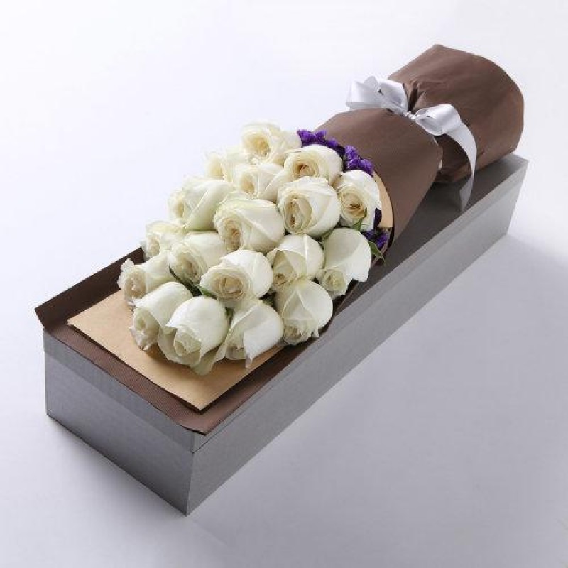 花礼/一如初见/精品玫瑰礼盒:白玫瑰19枝/鲜花/七夕情人节礼物鲜花/当日达