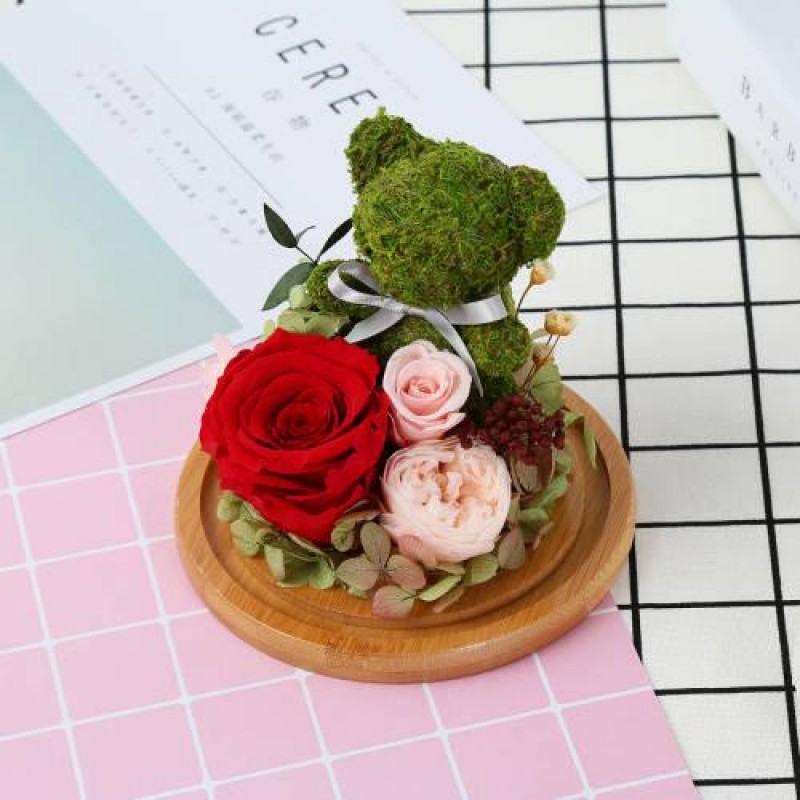 FLOWERSONG/倾尽所爱/苔藓小熊/进口红玫瑰、香槟色奥斯丁玫瑰、浅粉桃色小玫瑰七夕情人节生日礼物 $51.3 |