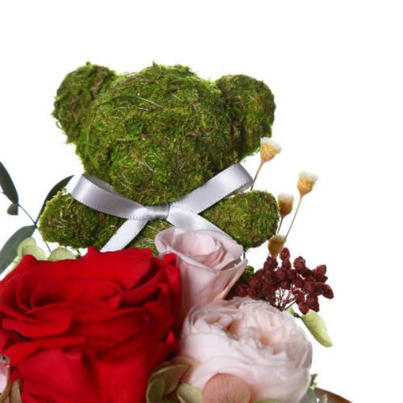FLOWERSONG/倾尽所爱/苔藓小熊/进口红玫瑰、香槟色奥斯丁玫瑰、浅粉桃色小玫瑰七夕情人节生日礼物