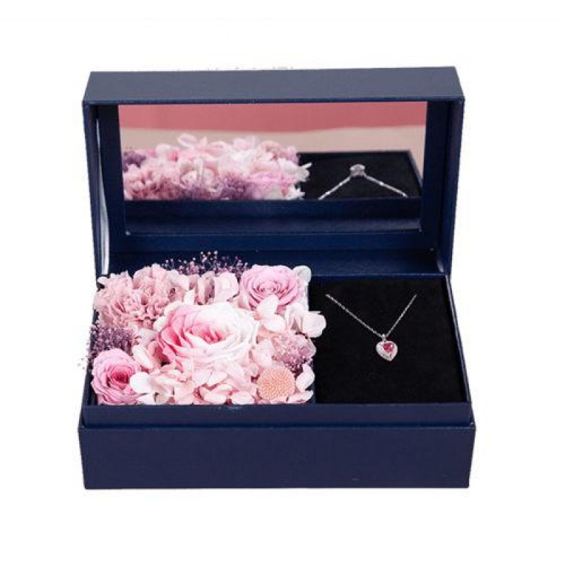 Eternal Love Flower Rose+Swarovski ONE Necklace Romantic Heart Necklace