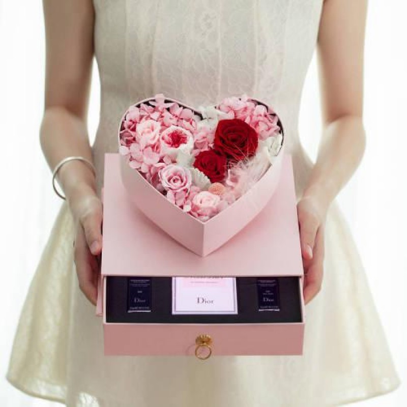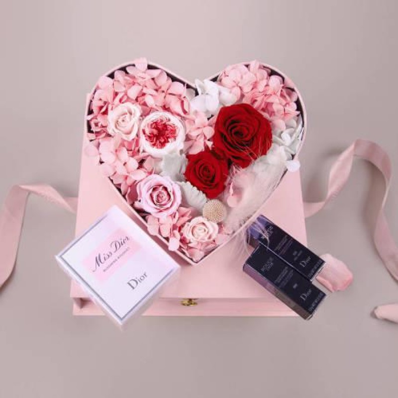 FLOWERSONG/Heart shaped Gift Box/Dior Lipstick 520+999+Floral perfume 30ml