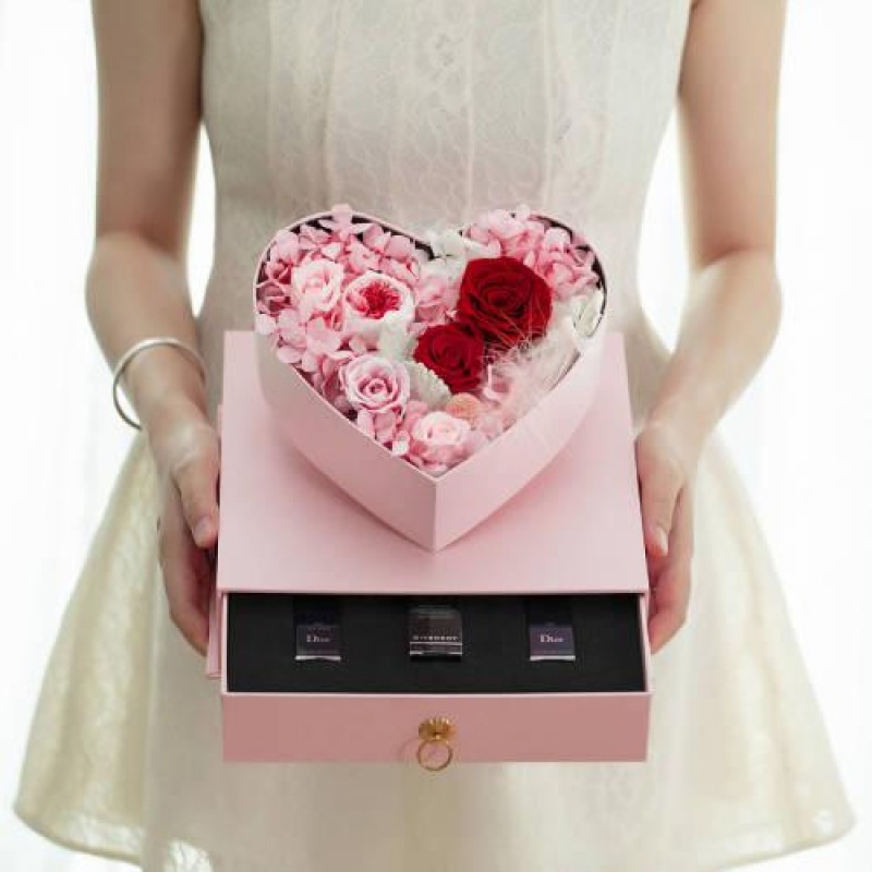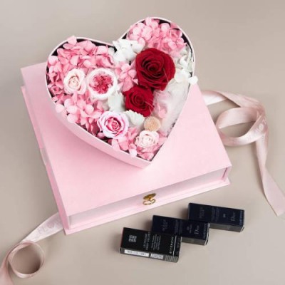 FLOWERSONG/Heart shaped Gift Box/Dior Lipstick 520+999+Givenchy N37