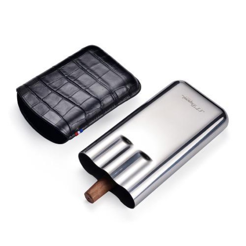 S. T. Dupont French Dupont New Metal Leather Cigar Box with Crocodile Pattern Portable Three Cigarette Pack 183017