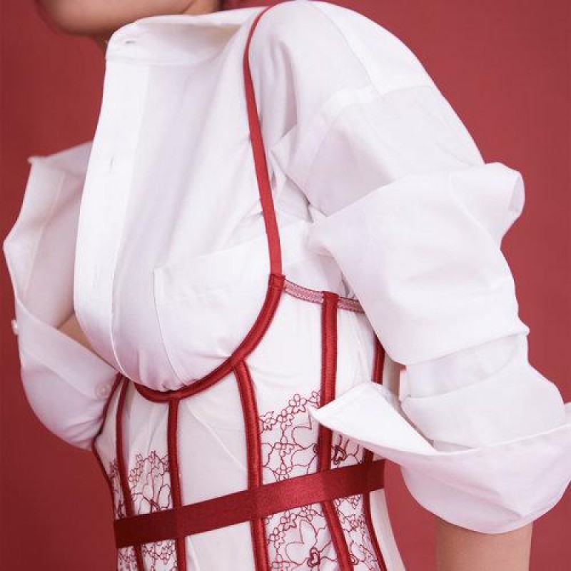 【21春夏】AuroraAlba情人节绽放酒渍玫瑰色网纱刺绣花边骨衣 $55.4 |